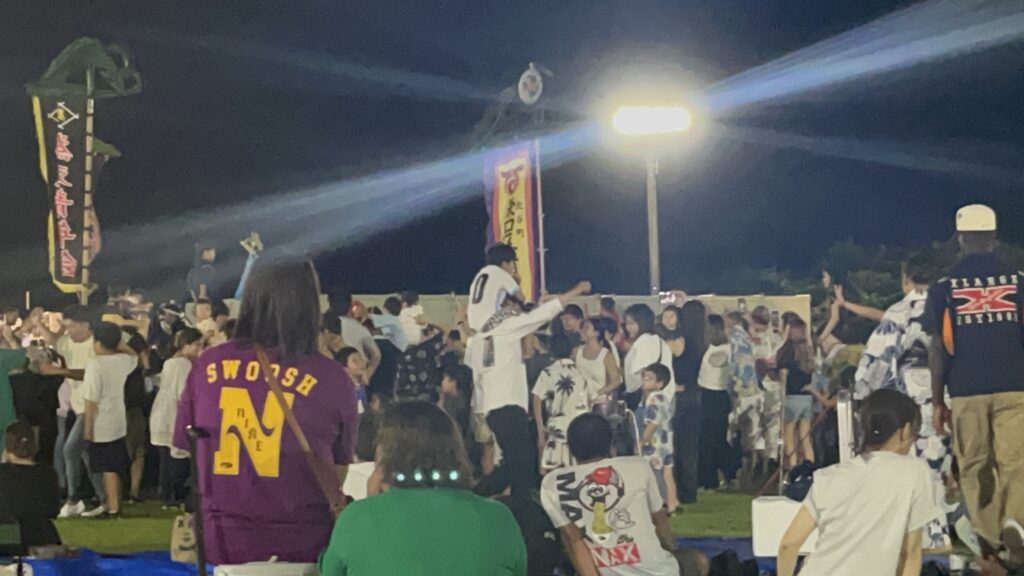 エイサーに酔いしれた後はカチャーシーとなり、息子と友達は輪の中に吸い込まれていった。