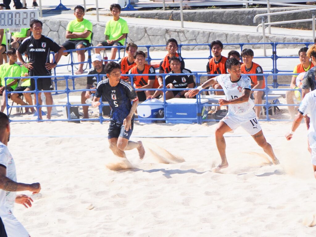 そして、翌週のこの土日は、ビーチサッカーの国際親善試合(ポルトガル 対 日本)が行われた。東海岸の西原きらきらビーチで、普段お世話になっているコーチ達が代表チームで活躍している様子や、現場の迫力を間近に感じられて、大興奮だった!