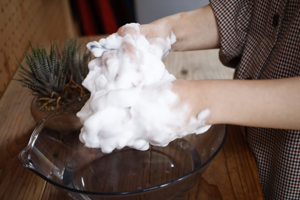 代表的な成分として、沖縄で古来から使用されていた沖縄海底泥(クチャ)を使い、弾力のある滑らかな泡で肌の摩擦を減らしつつ、細かい粒子が毛穴汚れに吸着し、角質がたまったお肌のザラザラ感やくすみを洗い流し、透明感のあるお肌へと導いてくれます。