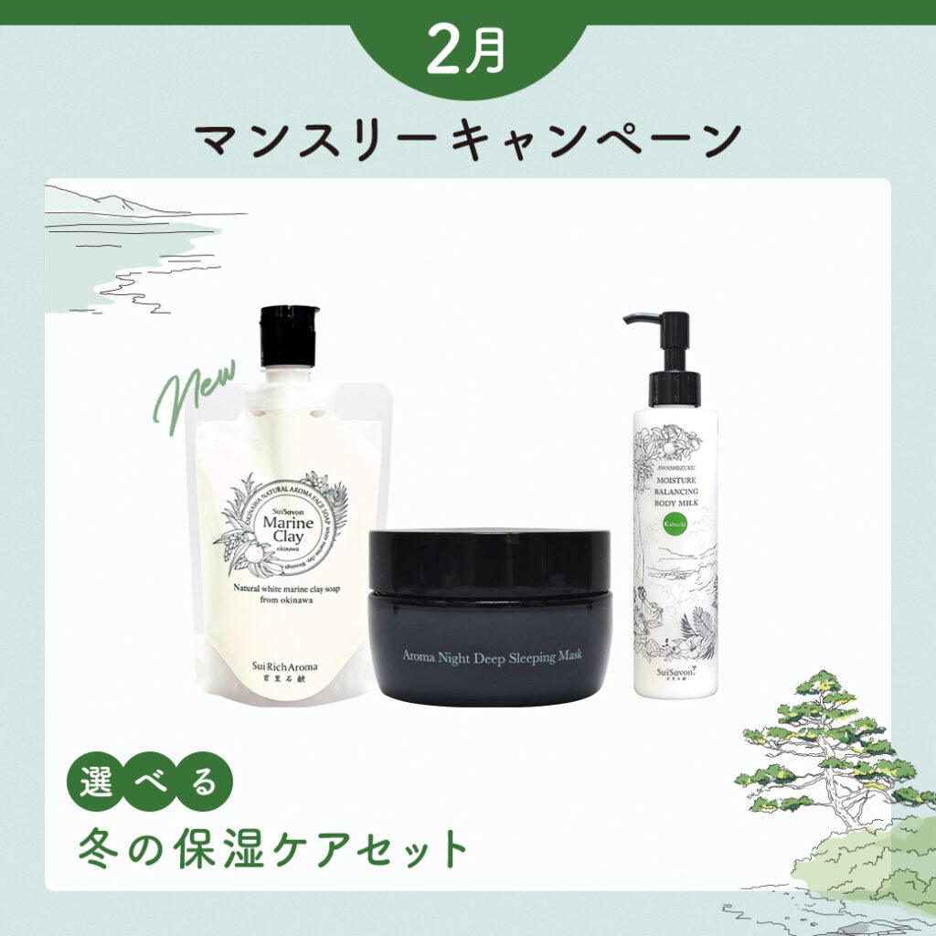 ▲マリンクレイ洗顔石鹸200gが選べるマンスリーセット ¥8,822円(税込)