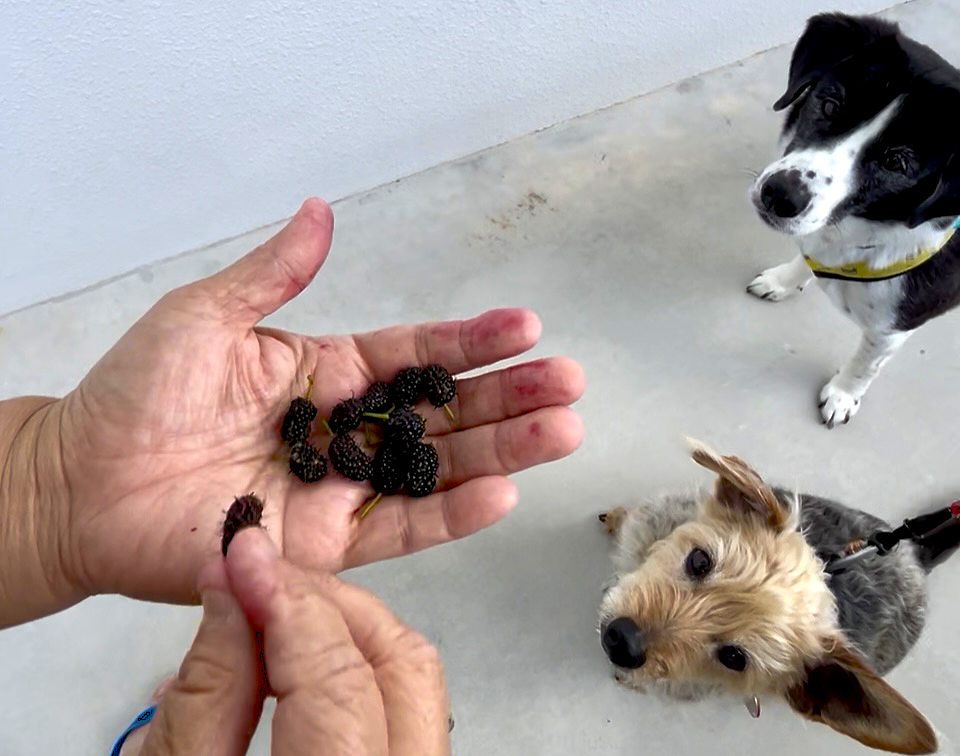 翌日から散歩の休憩に、桑の木の下で実をつまんでは愛犬と一緒に食べる日が続いている。